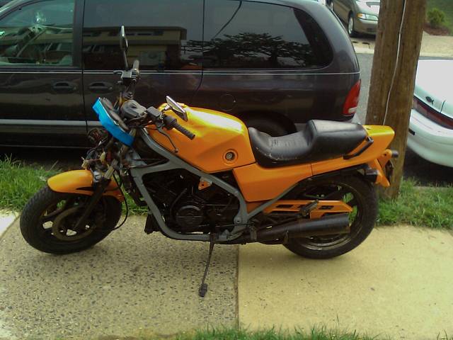 my first bike. came all black, everything spray painted. took her down for a couple weeks to replace a couple things, tinker and paint. almost done. waiting for headlights. will dabble in fiberglass w/ a gauge mount. trying for street fighter look